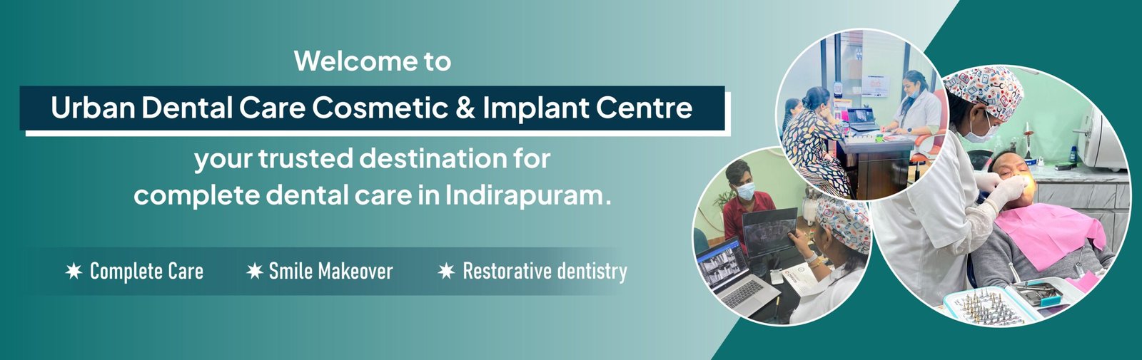 Welcome to Urban Dental Care Cosmetic & Implant Centre, your trusted destination for complete dental care in Indirapuram. We offer a full range of dental services including cosmetic dentistry, implants, braces, root canal treatments, and more — all under one roof. Our clinic is equipped with the latest technology and led by experienced dental professionals who prioritize your comfort and smile. Whether you need a routine check-up or a smile makeover, we’re here to help you every step of the way. Visit the Best Dental Clinic in Indirapuram and experience quality, compassionate care that makes a difference.
